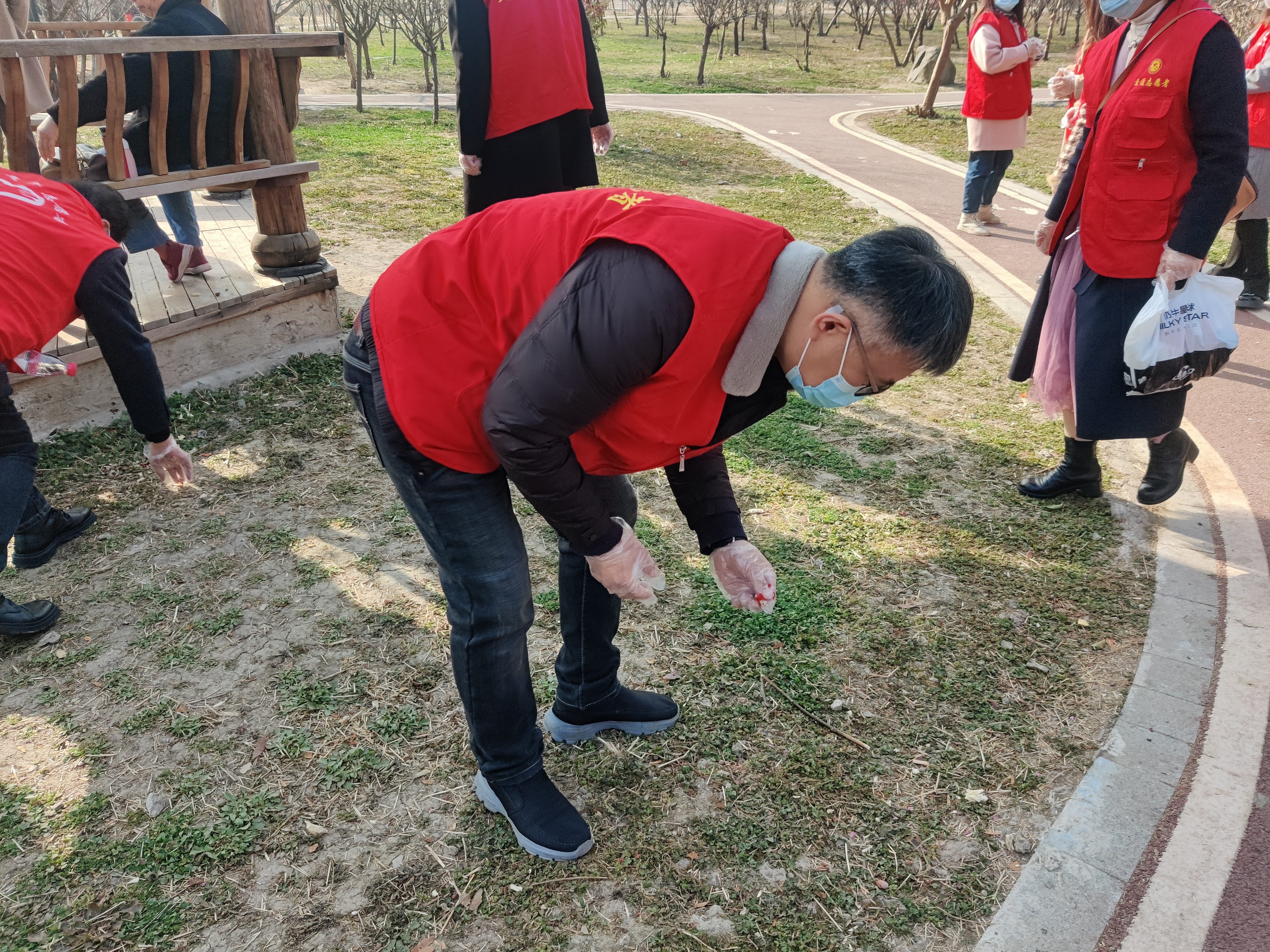 活動中,志愿者們穿著紅馬甲,戴著手套,互相配合,積極發揚奉獻精神,仔細清理著路邊的、草叢中的煙蒂、碎紙屑、塑料袋、瓜皮果殼等,默默用行動傳遞“美化環境我先行”的理念,倡導大家爭做文明市民,共同維護美好家園,贏得了游玩市民的紛紛點贊。