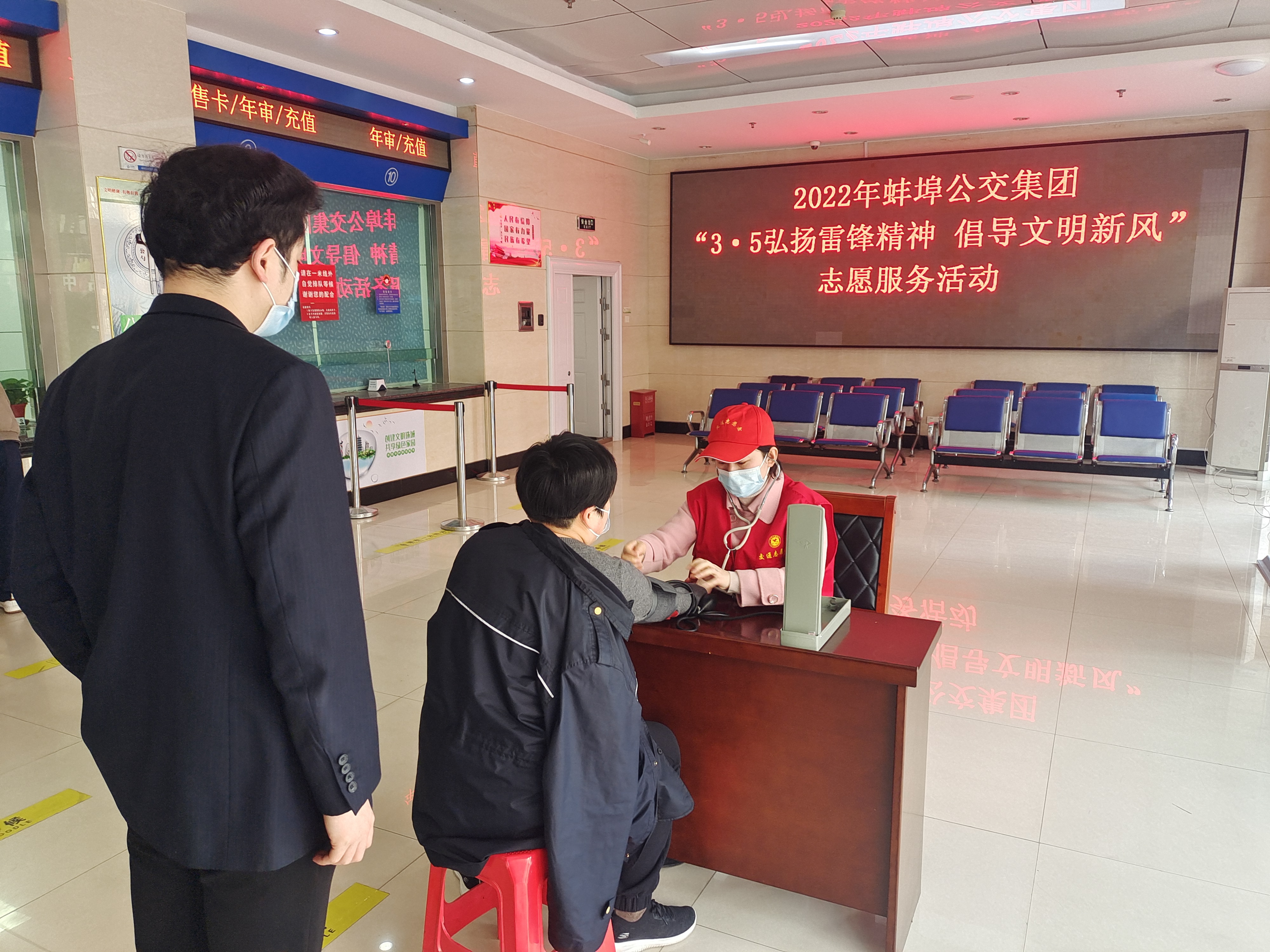 3月4日,在學雷鋒紀念日即將來臨之際,公交集團組織開展“3?5弘揚雷鋒精神 倡導文明新風”——醫療健康志愿服務活動,前來通卡公司辦理業務的市民測量血壓,宣講疫情防控知識、新冠病毒疫苗接種知識。