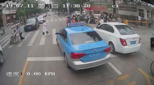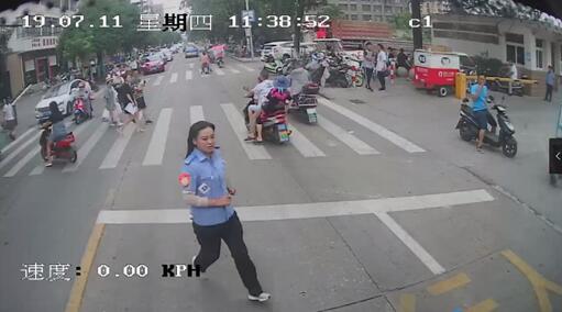 輪椅是手動的,坐在輪椅上的老大爺顯得特別吃力,劃到馬路三分之一處就開始原地打轉。駕駛員薛嬌發現后,立即停車開啟前門下車,跑到老大爺身后,推著輪椅將殘疾老大爺安全送達馬路對面的人行道上。之后她快速回到車上,駕駛公交車繼續前行,這一幕得到了全車乘客的掌聲和點贊。